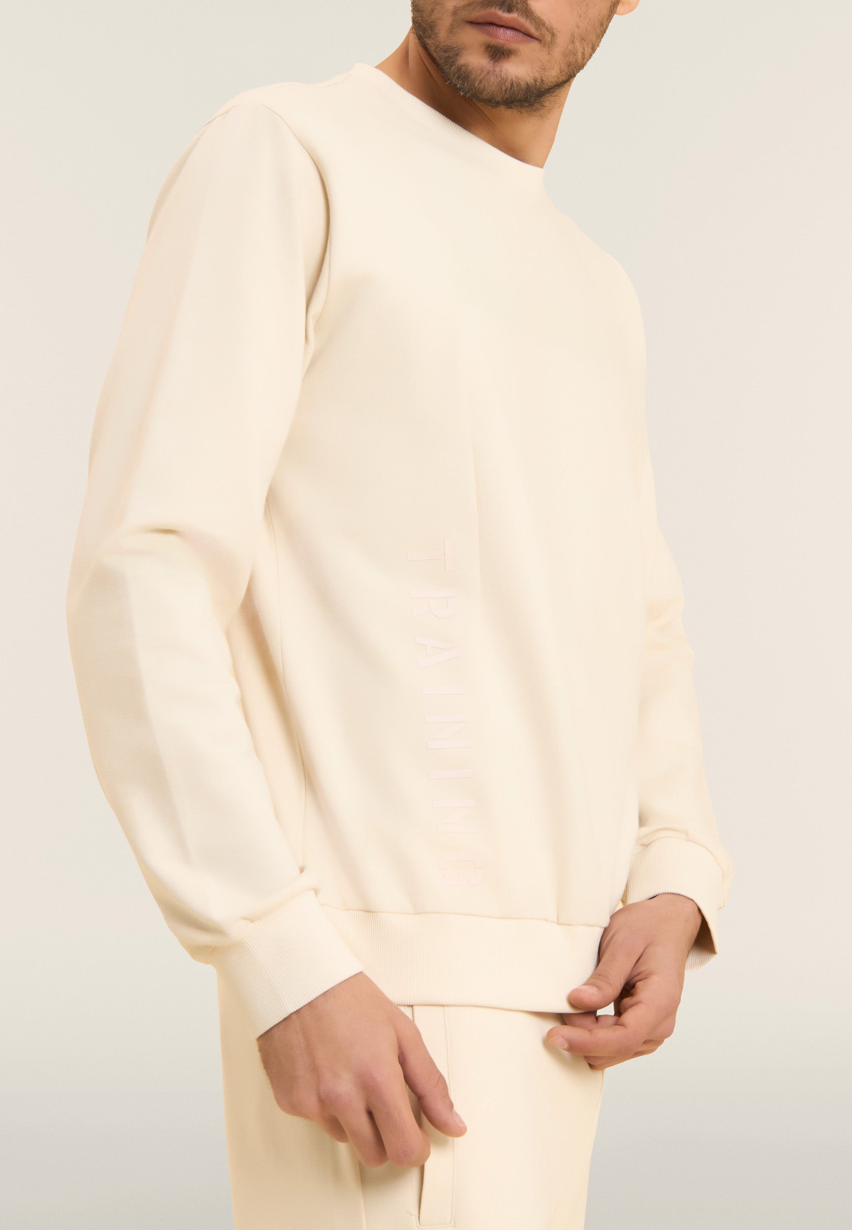 Crew neck sweatshirt with tone-on-tone "TRAINING" print - White Swan