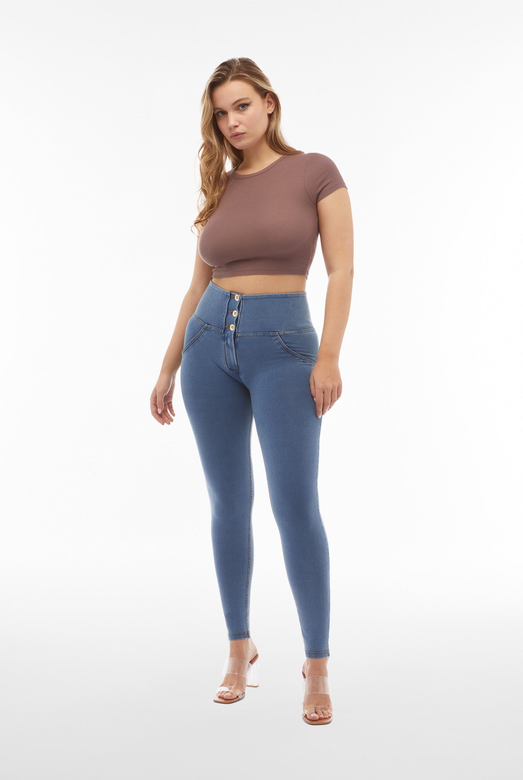 WR.UP Push-Up Button High Waist Skinny Denim Jeans - Denim Light Blue - Blue Seam