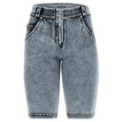 Freddy WR.UP® Snug Damen Push-Up Biker Shorts - Regular Waist - Denim Moonshine Indigo - Gelbe Nähte - J78Y