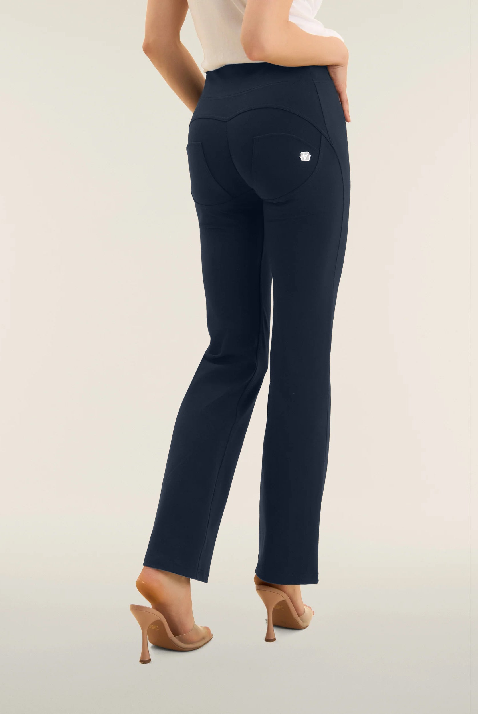 WR.UP® bukserne i blå kombinerer ikonisk Freddy-stil med enestående komfort. De har en slank skinny pasform, der omfavner dine kurver. Derudover har de en moderne 7/8-længde, der subtilt fremhæver dine ankler. Looket fuldendes af en flatterende høj talje, der giver blid støtte. Fremstillet i et stretch denim-effekt materiale for autentisk stil og nem bevægelse. Som en del af WR.UP®-serien har de patenteret teknologi designet til naturligt at forbedre og forme din silhuet. Italiensk design, der udstråler selvtillid og stil.