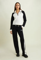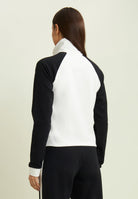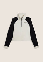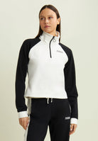 Two-tone cropped sweatshirt with half-zip and turtleneck