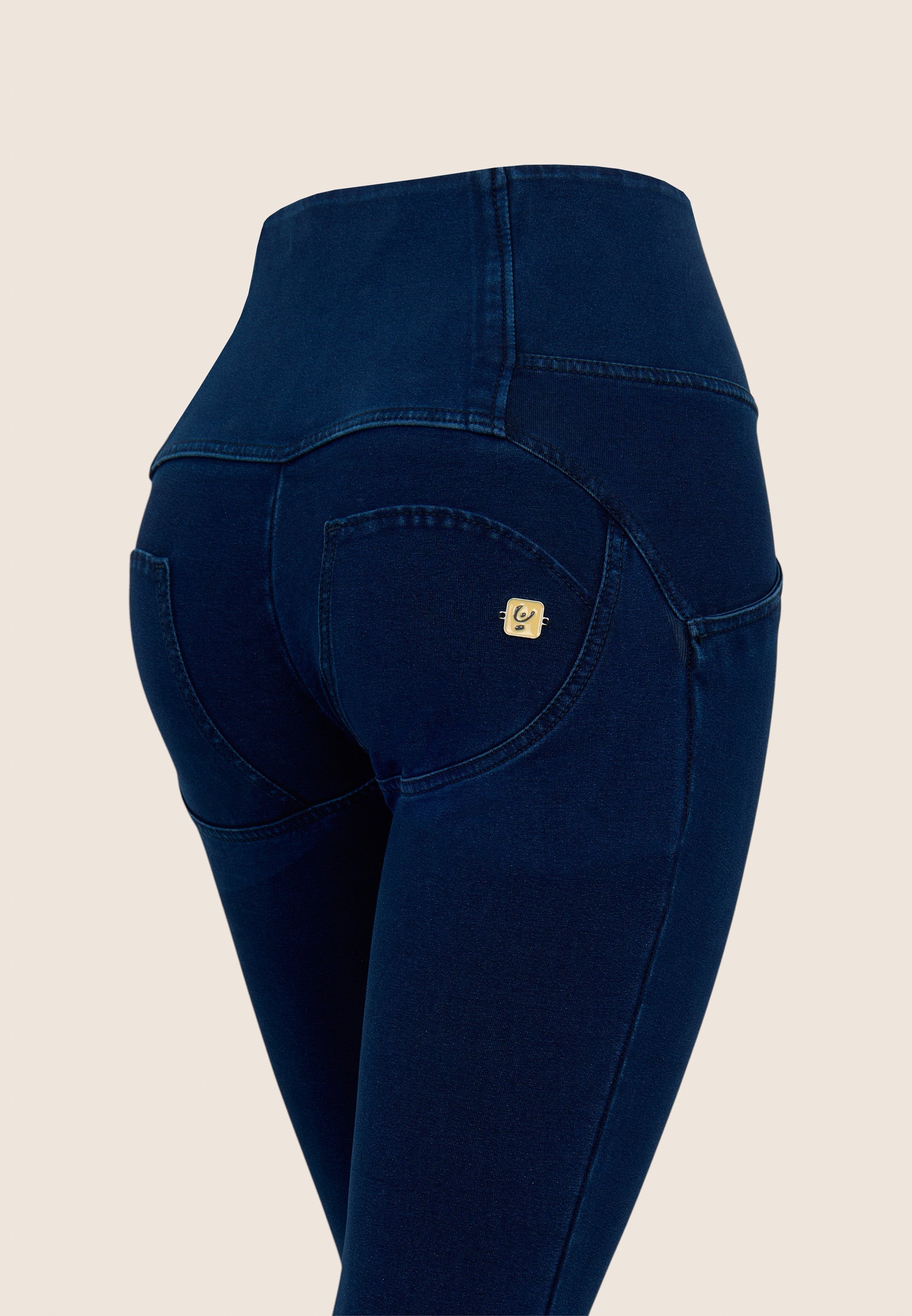 WR.UP Push-Up Button High Waist Skinny Denim Jeans - Denim Dark Blue - Blue Seam