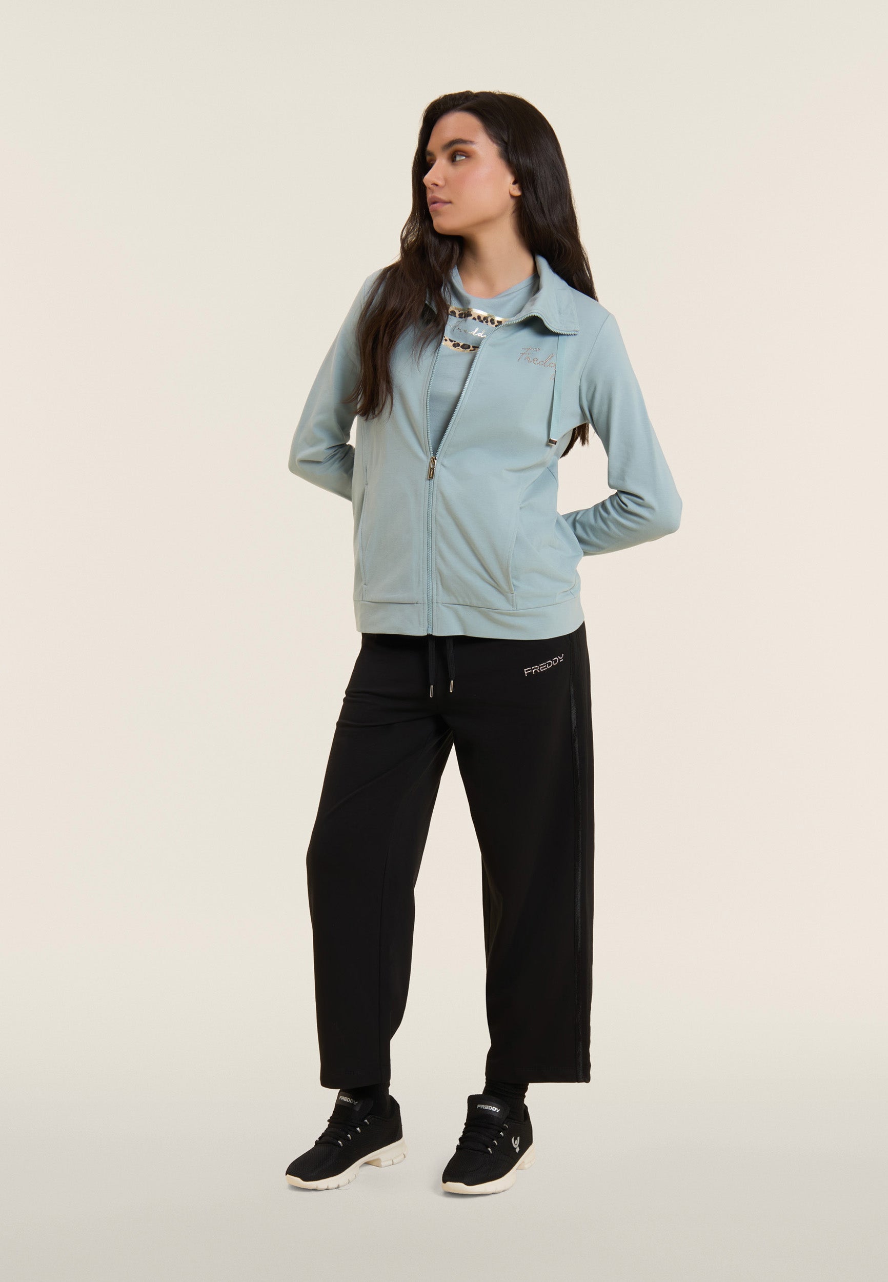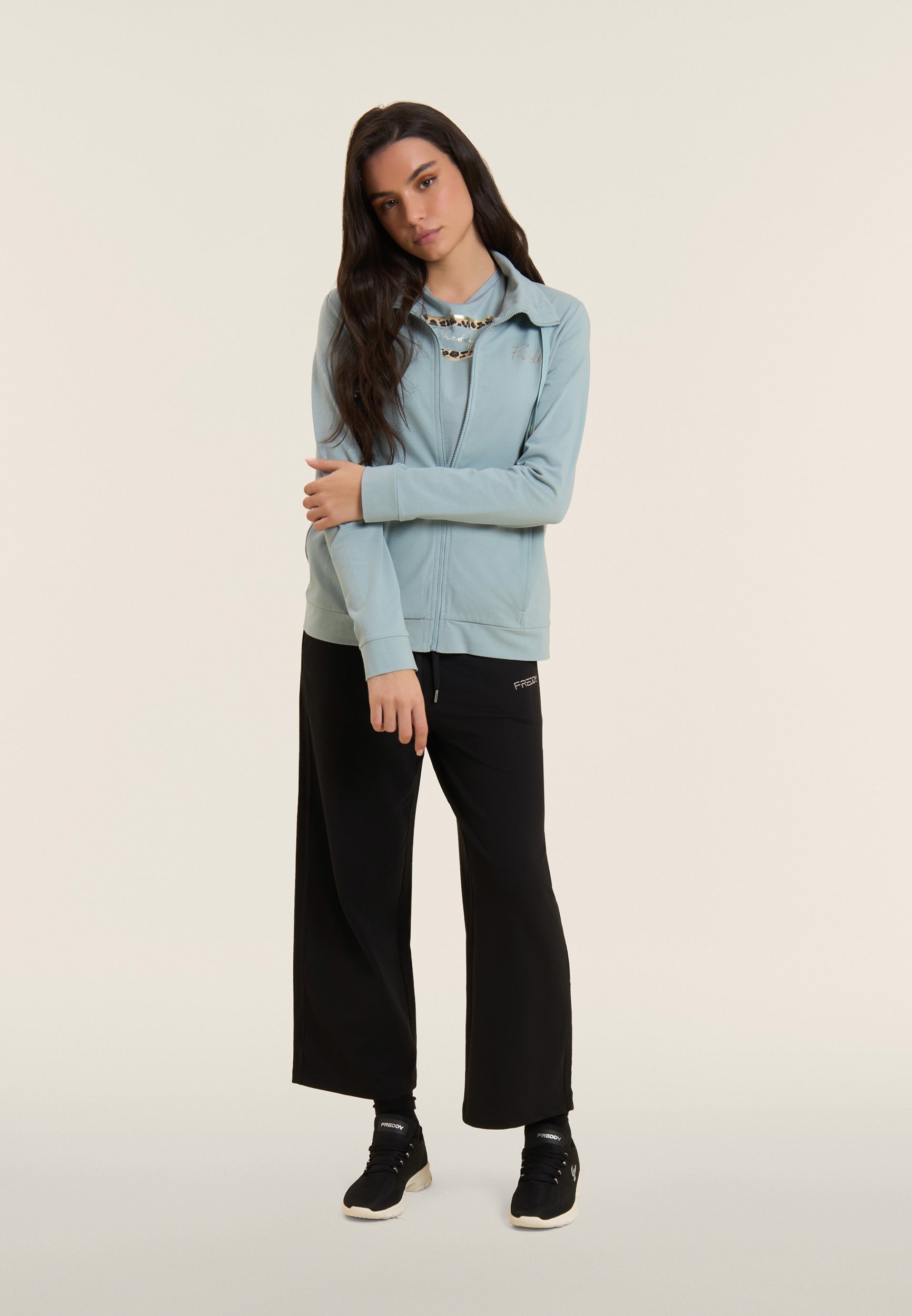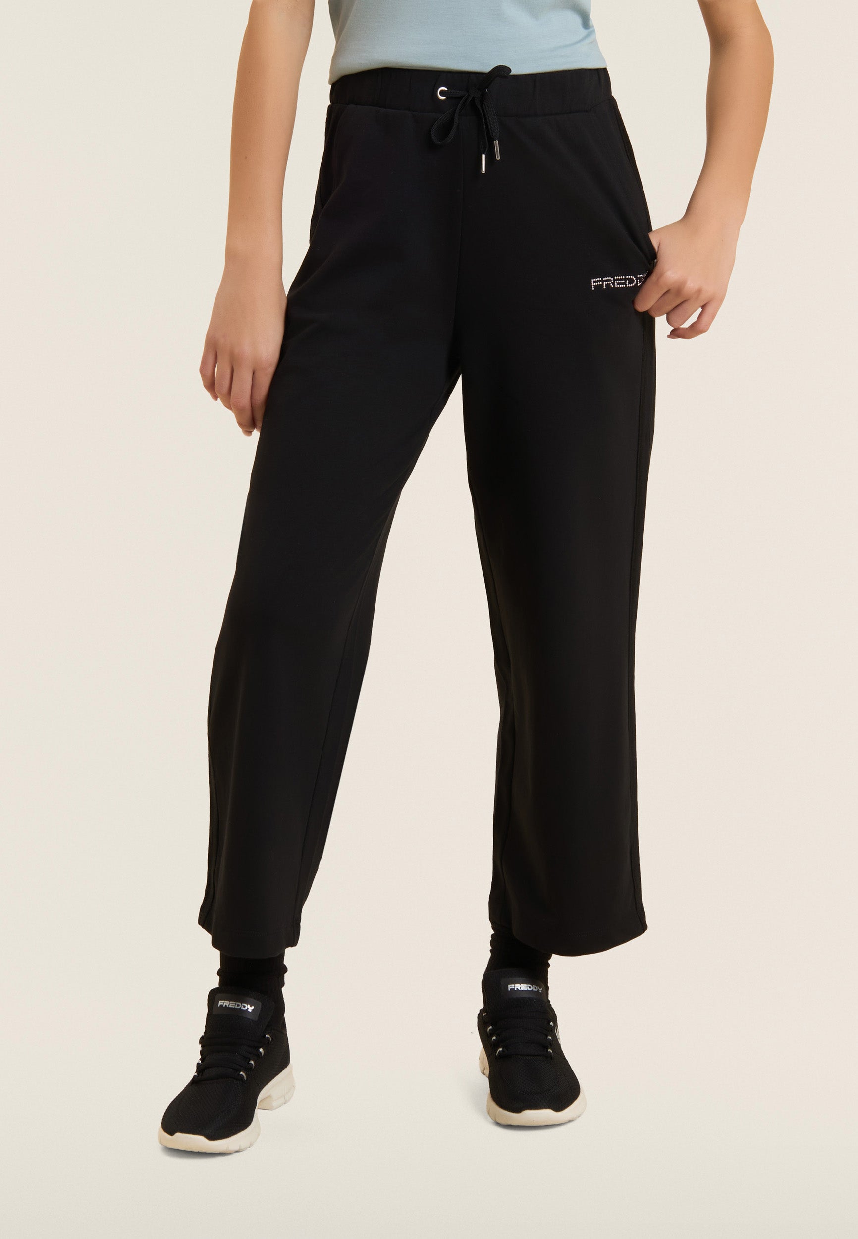 Cropped comfort wide leg athletic trousers - Black