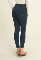 WR.UP® super skinny push-up 7/8 length trousers in heavy organic stretch cotton jersey. High waist with central zip and large side inserts in jacquard elastic, for a graphic effect that enhances the profile of the leg.