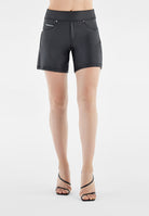Freddy N.O.W.® vegansk læder yoga dame komfort lædershorts - midje i taljen bred ben - sort - N0